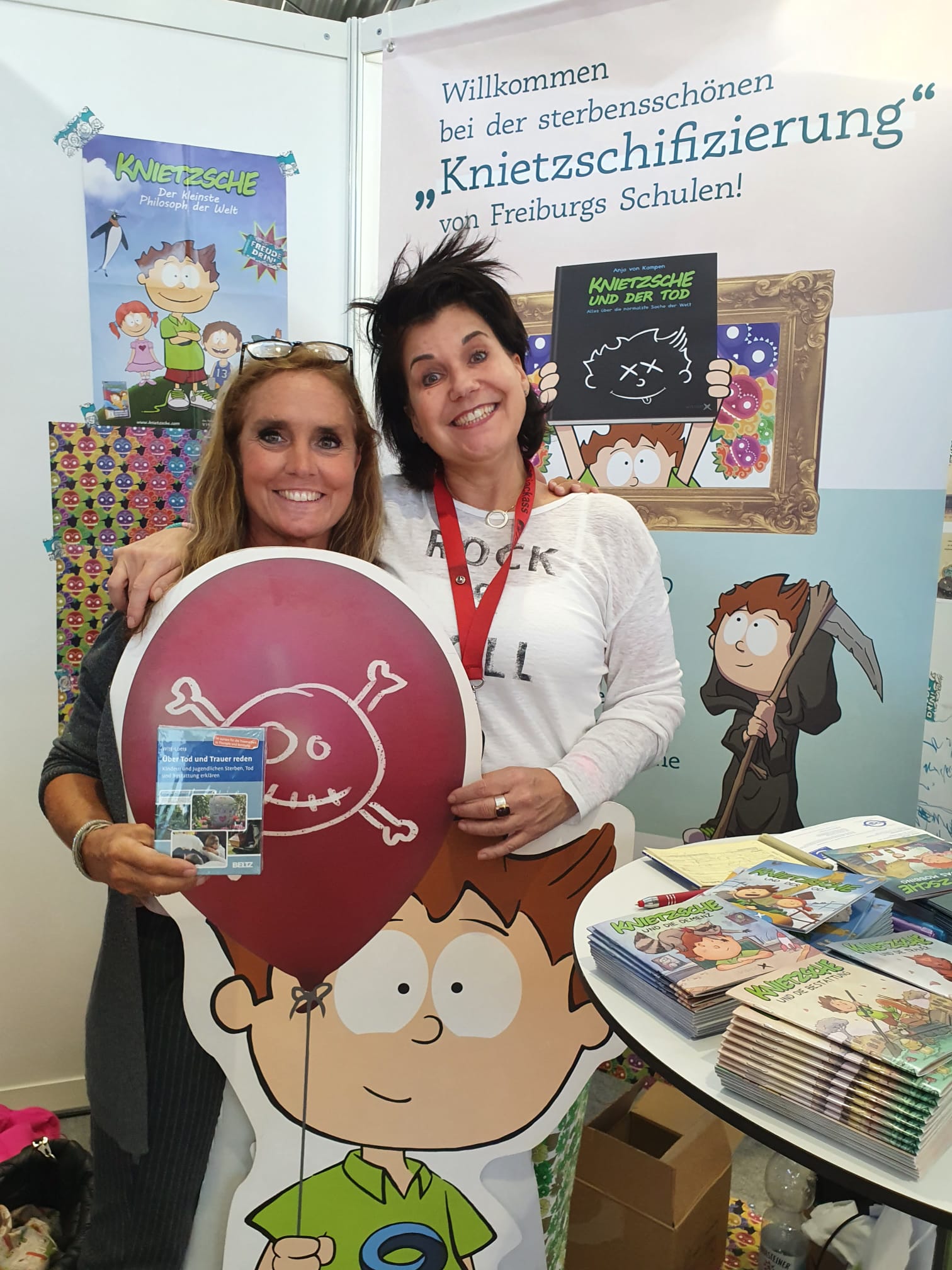 Ich bin vielen bekannten und neuen tollen Menschen begegnet, es gab Austausch, Vernetzung und dann war alles wieder viel zu schnell zu Ende. Mit Anja von Kampen gab es wieder „Knietzsche Kontakt“, denn Knietzsche kommt in meinem Kartenset natürlich auch vor und beim Standdienst des Bundesverband Trauerbegleitung hatte ich viel Spaß mit Susanne Bachtler, Gabi Becker, Conny Reiser, Petra Sutor Franziska Bobillier und vielen anderen.
