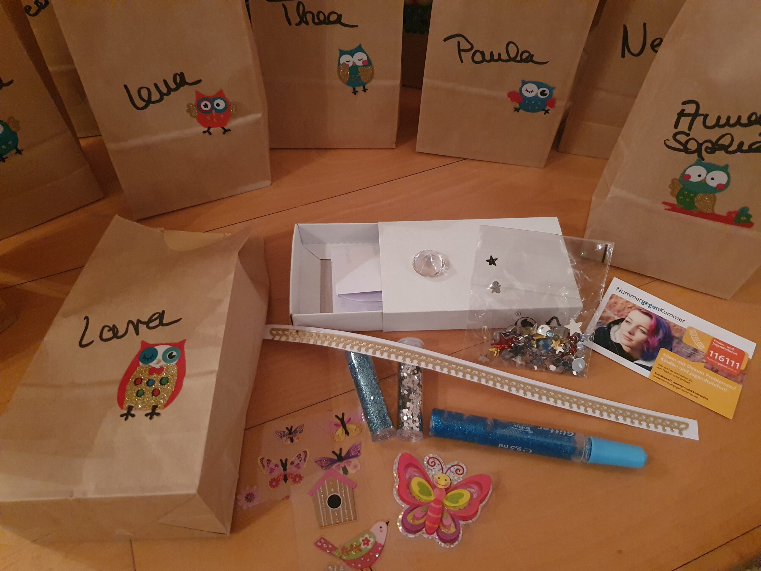 „Wir schicken jedem Kind vor den virtuellen Treffen ganz persönliche Päckchen. Enthalten ist Material mit dem die Aufgaben und Themen, die die Trauer an kleine wie große Menschen stellt, in der Begleitung bearbeitet werden können“, so Projektleiterin Stephanie Witt-Loers. „Kinder bearbeiten ihre Trauer anders als Erwachsene, eher über das Spiel und das kreative Gestalten. Deshalb ist das selbst entworfene, kindgerechte Material dementsprechend ausgerichtet und der individuellen Situation des Kindes angepasst.“